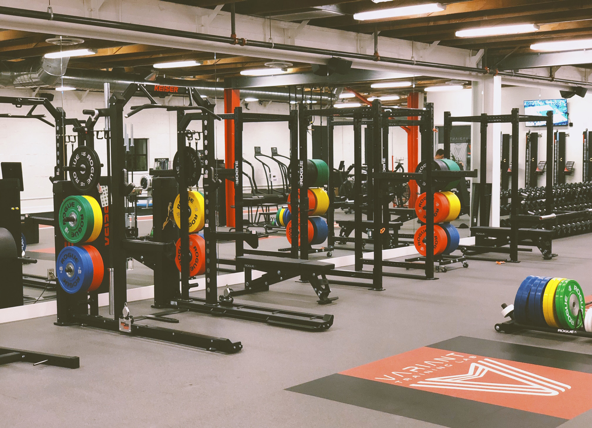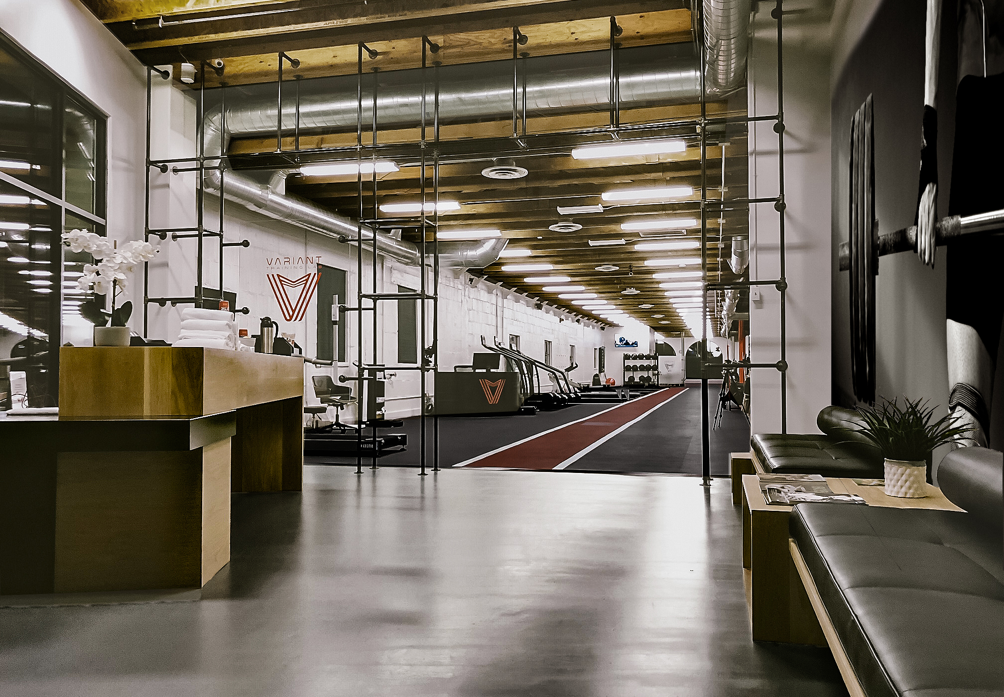 AKI – ArthroKinetic Institute Movement Lab (www.akilabs.com) is an innovative functional training facility based in Santa Barbara that incorporates research grade testing with state of the art treatment and training. Operating in a shared space for the past three years, AKI is creating its flagship gym in an 8,500 square foot space, previously occupied by a mat- tress store. The space is blessed with numerous large windows and a generous skylight which continue along both exterior walls letting in a fair amount of natural light. Closely aligned weight bearing trusses and venting crowd the ceiling with painted large brick wainscoting around the perimeter of the space. With plans to expand nationally, the company wanted a distinctive look for its flagship gym (on a minimal budget) that could be replicated in other markets and which would serve as a backdrop for the creation of a broad range of branding assets.